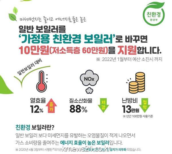 보일러 1대당 일반 가구는 10만 원, 저소득가구는 60만 원까지 지원받을 수 있다. 올해 이미 보일러를 교체한 가구도 소급 적용해 보조금이 지급된다.
