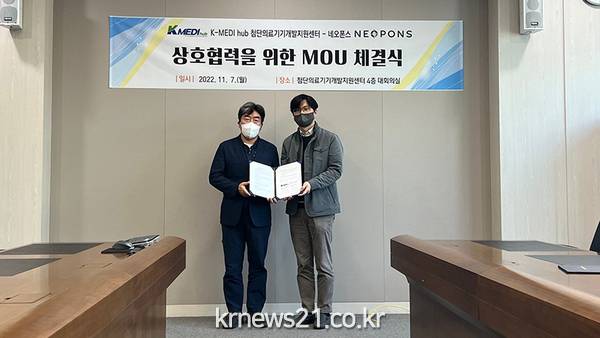 양진영 이사장은 “네오폰스가 의료 인공지능 분야에 특화된 기업인 만큼 기기센터와 많은 분야에서 함께 할 수 있을 것”이라며 “이번 협약을 계기로 실질적인 협력이 이루어지고 빠른 시일 내에 가시적인 성과가 나타나길 바란다”고 언급했다.