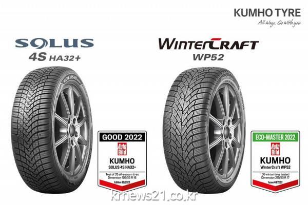 ▲  사진=금호타이어금호타이어(대표 정일택)의 유럽 특화 제품인 사계절용(All-season) 타이어 ‘솔루스(SOLUS) 4S HA32+’가 유럽 최고 권위 자동차 전문지 ‘아우토빌트(Auto Bild)’의 2022년 타이어 테스트에서 우수한 평가를 거뒀다.