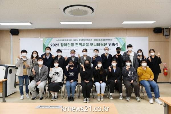 ▲  사진=광양시중마장애인복지관광양시 중마장애인복지관(관장 정헌주)이 11월 3일(목) 광양시 광양장애인복지관(관장 이영재)과 순천대학교 건축학부와 ‘장애인 등 편의시설 모니터링단’ 위촉식을 진행했다고 밝혔다.