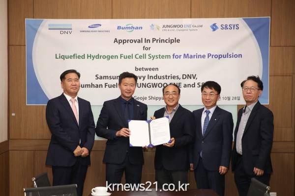 ▲ 사진=범한퓨얼셀수소연료전지 및 수소충전소 전문 회사 범한퓨얼셀(대표이사 정영식)이 삼성중공업과 공동 연구를 통해 ‘액화수소 연료전지 선박 추진 시스템’ 개발에 성공, 노르웨이 선급인 DNV에서 AIP (Approval In Principle) 인증을 획득했다고 9일 밝혔다.
