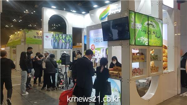 ▲ 여주시 일산킨텍스 메가쇼 참가 농특산물 홍보여주시는 지난 11월 10일부터 13일까지 4일간 일산킨텍스(KINTEX)에서 개최되는 2022 시즌 2 박람회에 참가해 여주시 농특산물을 홍보했다.