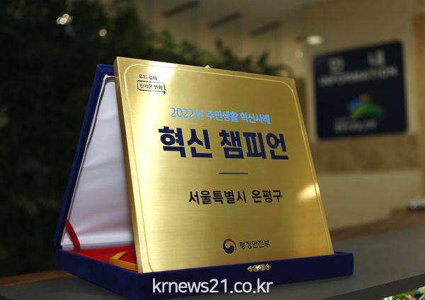 ▲ ▲ 사진=은평구는 행정안전부 `주민생활 혁신사례`에 ‘AI 기반 대형폐기물 처리 시스템 구축’이 우수사례에 선정돼 ‘혁신 챔피언 인증패’를 수상했다.서울 은평구(구청장 김미경)는 행정안전부 '2022년 주민생활 혁신사례' 우수기관에 선정돼 ‘혁신 챔피언 인증패’를 수상했다고 밝혔다.