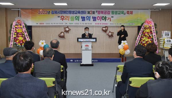 이광호 김제시장애인평생교육센터장은 "1년 동안 열심히 교육에 참여한 교육생과 넘치는 열정으로 지도해준 강사분들께 박수를 보내며, 행복공감 평생교육 축제를 통해 배움의 기쁨을 나누는 시간이 되길 바란다."라고 전했다.