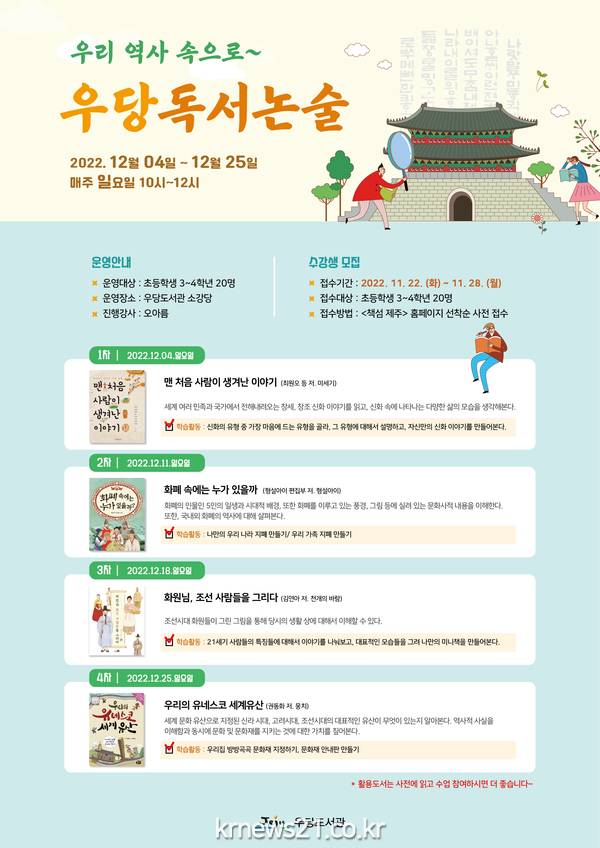 ▲ 사진=제주시제주시 우당도서관(관장 김철용)은 초등학생을 대상으로 오는 12월 3일부터 12월 25일까지 송년 어린이 프로그램을 진행한다고 밝혔다.
