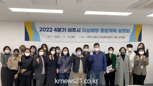 ▲ 여주시정신건강복지센터(부설)자살예방센터, 여주시민의 생명존중문화 조성을 위한 읍면동 설명회 실시여주시정신건강복지센터(부설)자살예방센터에서는 여주시민의 생명존중문화조성을 위한 민관 협업 방안을 모색하고자 12개 지역 읍·면·동 행정복지센터 맞춤형복지팀 종사자를 대상으로 11월 15일 설명회를 실시하였다.