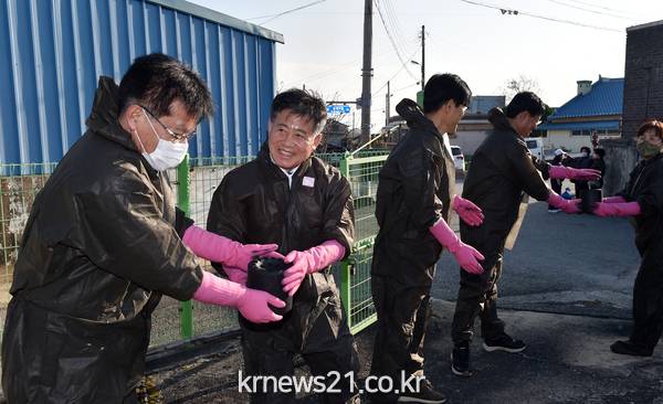겨울로 접어든 추운 날씨에 지난 17일 정성주 김제시장, 김제시공무원노동조합위원장, NH농협 김제시지부장 등 30여명은 신풍동 한 저소득가정을 방문하여 사랑의 연탄을 직접 배달하고 어려운 이웃과 훈훈한 온기를 나누는 시간을 가졌다.