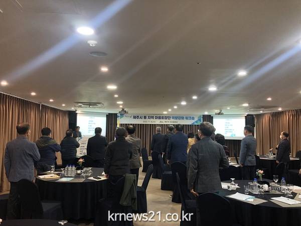 ▲ 사진=제주시제주시 동지역 마을회장협의회(회장 송용종)에서 11월 16일(수) 17시 아젠토피오레컨벤션에서 제주시 동지역 마을회장 등 100여명이 참석한 가운데「제주시 동지역 마을회장단 역량강화 워크숍」을 개최하였다.