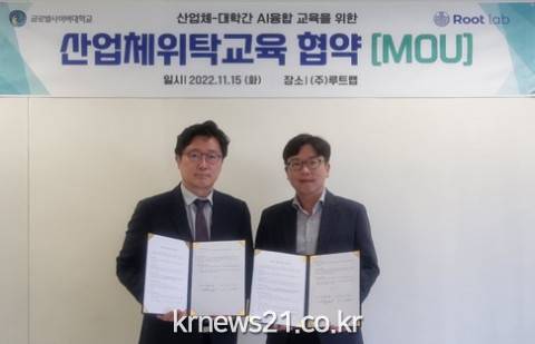 ▲ 사진=글로벌사이버대학교글로벌사이버대학교 AI융합학과 석광호 학과장과 주식회사 루트랩 김종현 대표가 11월 15일 산업체위탁교육 협약(MOU)을 체결했다.