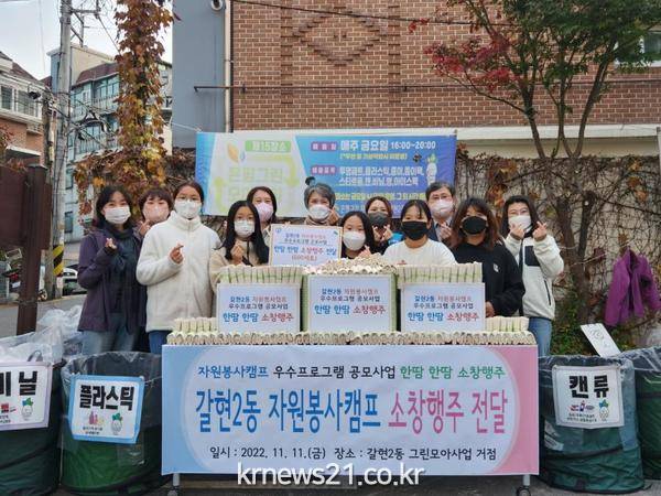 소병웅 갈현2동장은 “자원 선순환 사회 구축을 위한 은평그린 모아모아사업에서 우리 동은 수거량 및 참여율 1위를 기록하는데, 이번 기회를 통해 더욱 활성화될 것으로 기대된다”면서 “주민자치회와 자원봉사캠프, 청소년 봉사자에게 감사드린다”고 전했다.