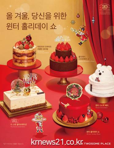 투썸플레이스는 ‘윈터 홀리데이 쇼(Winter Holiday Show)’를 테마로 브랜드 출범 20주년을 맞아 그 어느 때 보다 특별한 홀리데이 시즌을 완성하는 케이크 11종을 선보인다. 유명 일러스트 작가 최환욱과의 협업을 통해 완성한 동화적 감성의 화려한 아트웍을 활용한 디자인으로 환상적인 시즌 무드를 선사해 홀리데이 시즌 분위기에 흠뻑 빠져들 수 있다.