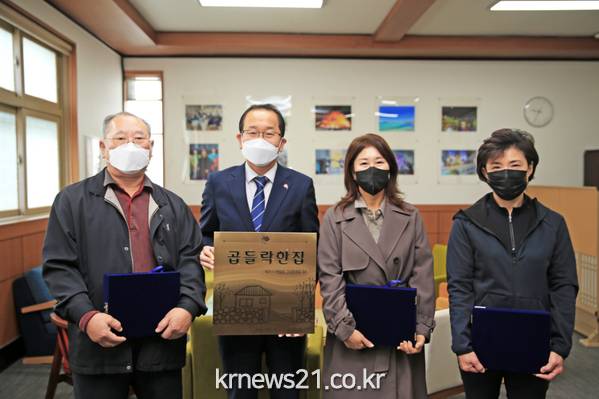 ▲ 사진=제주시강병삼 제주시장은 11월 24일 제주시청 시장실에서 2022년 「곱들락한 집」 수상작 3개소에 대하여, 현판 및 상패를 수여하였다.