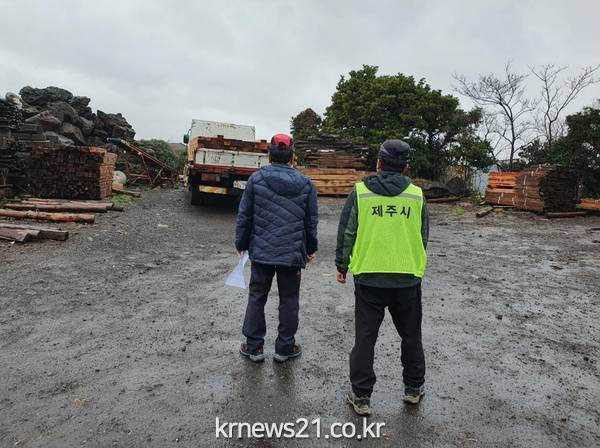 ▲ 사진=제주시제주시에서는 소나무재선충병 인위적 확산을 사전에 차단하기 위해 11월 22일부터 12월 16일까지 단속반(3개반/6명)을 투입하여 가을철 소나무류 취급업체를 대상으로 특별단속을 실시한다.