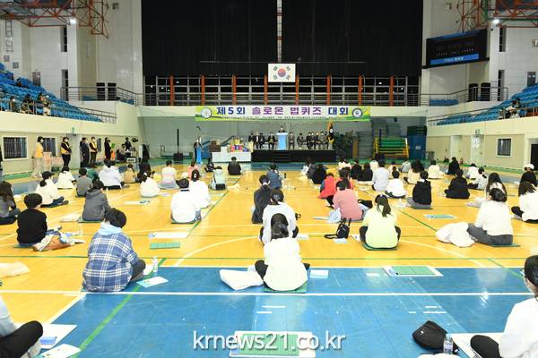 구리시(시장 백경현)에서는 지난 19일 구리시 실내체육관에서 법무부 청소년범죄예방위원 구리지구위원회(회장 이한윤) 주관으로 ‘제5회 솔로몬 법퀴즈대회’를 개최했다고 밝혔다.