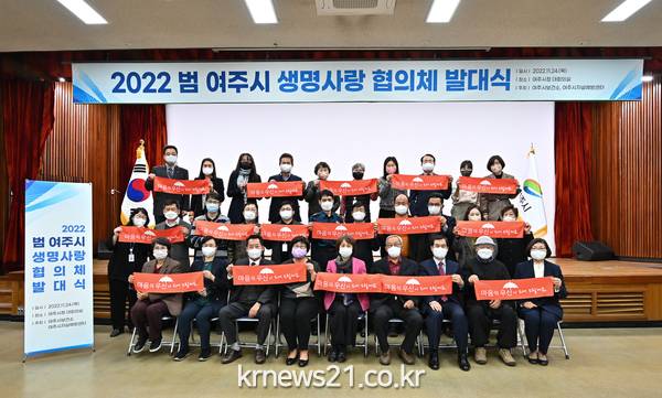 ▲ 여주시, 자살예방 안전망 구축을 위한 『범 여주시 생명사랑 협의체』 발족여주시에서는 자살예방 안전망 구축과 생명존중문화 확산을 위해 지난 24일 오후 2시 여주시청 대회의실에서 「생명사랑 협의체」를 구성하고 발대식을 가졌다.