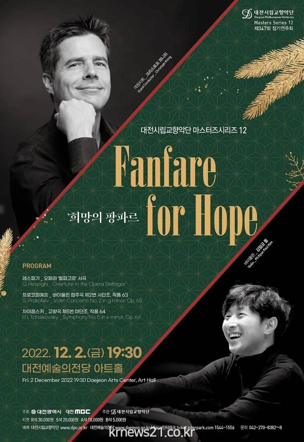 마에스트로 크리스토프 쾨니히가 이끄는 대전시향의 풍성한 오케스트라의 사운드와 바이올린의 섬세한 선율이 관객들의 마음을 사로잡는 따뜻한 무대가 될 것이다. 연주회의 자세한 내용은 대전시립교향악단 홈페이지(www.dpo.or.kr)를 참조하면 된다.