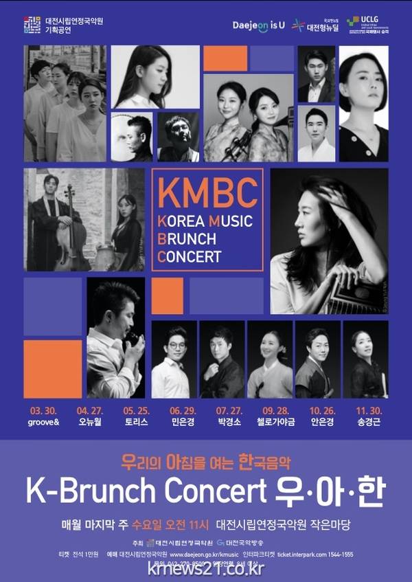 K-브런치콘서트 <우·아·한>은 대전국악방송과 공동으로 지역의 전통음악 인프라 확충과 국악의 대중화, 생활화를 위해 국내외에서 활발하게 활동하고 있는 연주자들이 국악 중심의 한국창작음악으로 클래식, 재즈 등 장르의 경계를 허물며 특별한 공연을 만들고 있다.