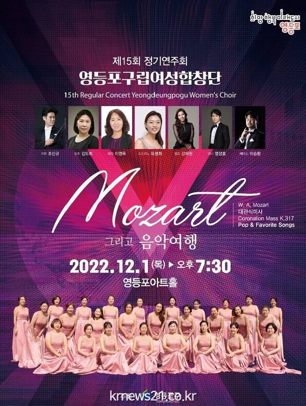 이번 정기연주회는 코로나19로 중단되었다가 3년 만에 열리는 공연이다. 영등포구립여성합창단은 ‘Mozart 그리고 음악여행’이라는 주제로 총 3부에 걸쳐 그간 갈고닦은 아름다운 하모니를 선보인다.