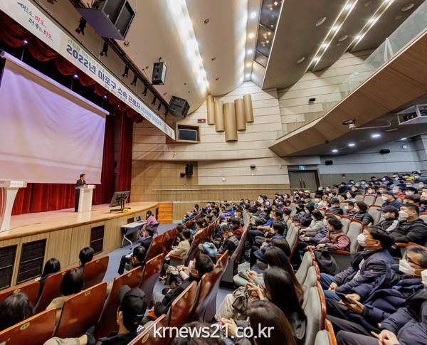 ▲ 사진=2022년 마포구 소속 근로자 4대 폭력 예방교육에서 직원들에게 건전한 성평등 문화 정착의 중요성을 강조하고 있는 박강수 구청장마포구(구청장 박강수)는 28일 오후, 구청 대강당에서 소속 근로자 230명을 대상으로 ‘4대 폭력(성희롱, 성매매, 성폭력, 가정폭력) 예방교육’을 실시했다.
