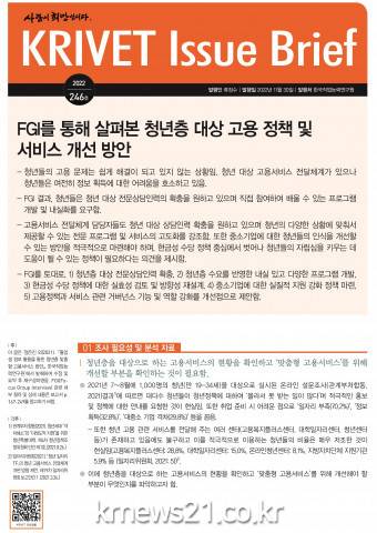 한국직업능력연구원(원장 류장수)은 11월 30일(수) ‘KRIVET Issue Brief 246호(‘FGI를 통해 살펴본 청년층 대상 고용 정책 및 서비스 개선 방안’)’를 통해 청년층에 대한 고용 서비스 정책의 문제점을 분석해 발표했다.