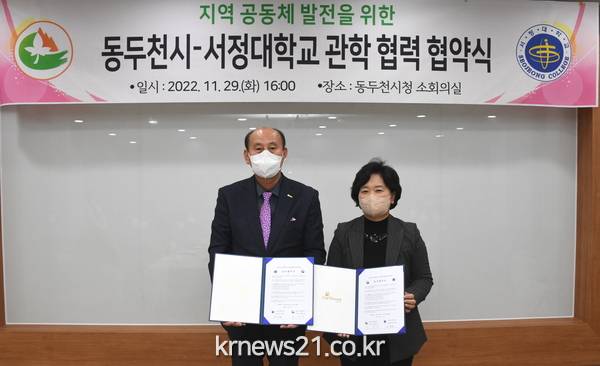 동두천시(시장 박형덕)는 지난 29일 서정대학교(총장 양영희)와 지역 공동체 발전을 위한 관·학 협력 협약을 체결하고 상호협력을 약속하였다.