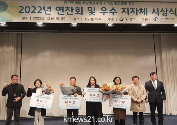 ▲ 사진=제주시제주시는 환경부에서 주관하는“2022년 폐가전 무상방문수거 우수 지자체 경진대회”에서 현장 우수 특별상을 수상하였다고 밝혔다.