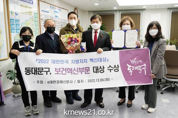 구는 코로나19 격리통지서 비대면·자동발급 시스템과 의료대응 역량강화 자동발생 보고 프로그램을 구축해 좋은 평가를 받아 보건혁신부문에서 대상을 수상했다. 보건혁신부문은 동대문구 외에 기준점을 넘은 지자체가 없어 구가 유일한 수상자로 선정됐다.