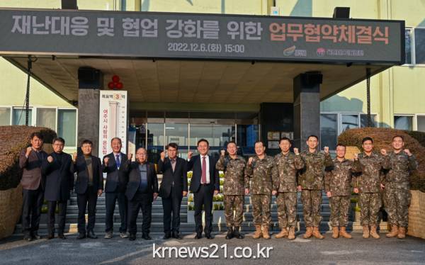 이날 협약식에는 이충우 시장, 고현석 제 7기동군단장을 비롯해 재난재해 및 안전사고관련 업무 담당부서장과 제 7기동군단 관계들이 참석해 업무 협약식의 의미를 함께 나눴다.