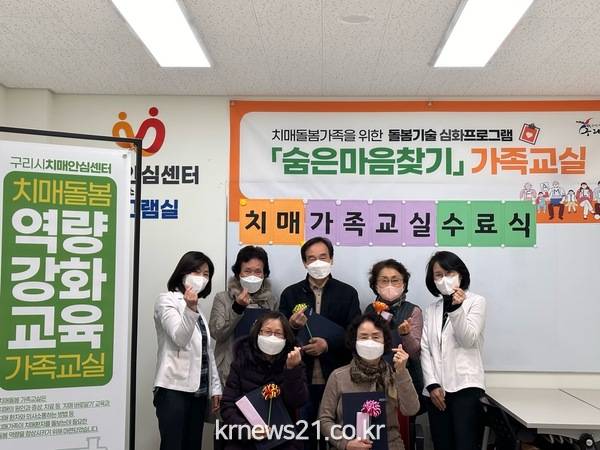 구리시(백경현 시장) 치매안심센터에서는 지난 6일 정신행동증상이 심한 치매환자의 가족과 보호자를 대상으로 교육한 ‘숨은 마음찾기’ 12기 가족교실 수료식을 가졌다.