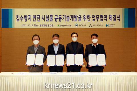 협약에는 침수피해를 예방하는 방재안전기술 공동개발, 연구협력 및 동반성장에 대한 상생협력의 내용이 담겼다.