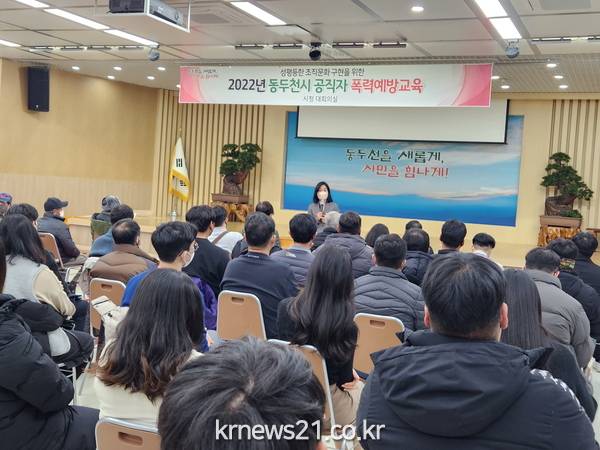 동두천시(시장 박형덕)는 지난 7일 시청 대회의실에서 2022년 신규 공직자, 공무직, 기간제 근로자를 대상으로 디지털성범죄·스토킹 예방교육을 실시했다.