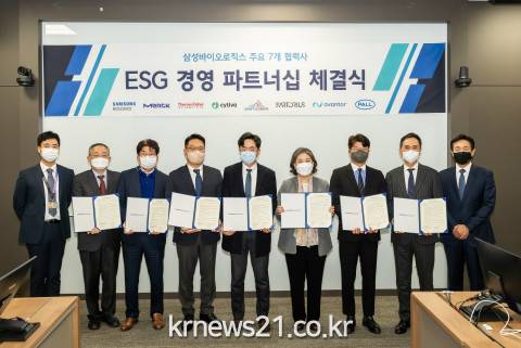 삼성바이오로직스는 12월 13일(화) 송도 본사에서 주요 협력사와 ‘ESG 파트너십 체결식’을 열었다고 밝혔다.