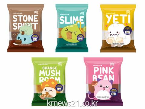 메이플스토리에서 인기 있는 캐릭터로 포장 패키지를 디자인했다. △돌의정령의초코콘 △예티의갈릭새우칩 △핑크빈의딸기별 △슬라임의카라멜치즈스틱 △주황버섯의계란과자 스낵류와 △예티의과일젤리 △핑크빈사우어젤리 등 상품에는 스티커가 아닌 색다른 82종의 딱지를 동봉해 새로운 아이템을 수집하는 재미를 제공한다.
