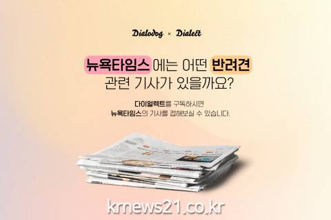 나라비전이 운영하는 반려견 관련 디지털 데이터 아카이빙 모바일 앱 다이얼독이 11월 16일 뉴욕타임스 라이선싱에서 콘텐츠를 제공받아 해외 반려문화에 대한 기사를 소개하는 뉴스레터 서비스를 시작했다고 19일 밝혔다.