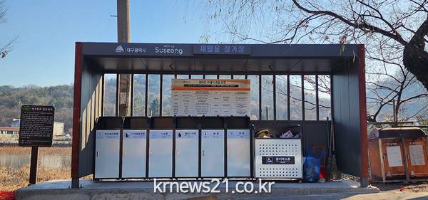 ▲ 사진=대구광역시대구시는 재활용률 향상과 시민들의 분리배출 편의 제공을 위해 재활용품 거점수거시설을 지속적으로 확대해 나가고 있다. 이번에 설치한 지역은 수성구의 분리배출 취약지 2개소(연호동 422, 고모동 375-1)로 현재 대구지역 내에는 전체 27개소가 운영되고 있다.