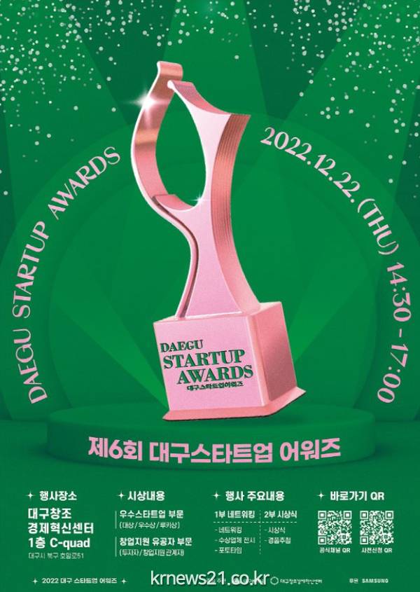 ▲ 사진=대구광역시대구시는 12월 22일(목) 오후 4시 대구창조경제혁신센터에서 한해동안 창업 성과를 공유하고 우수한 기술과 역량을 보유한 혁신 스타트업을 시상하는 ‘2022 대구 스타트업 어워즈’를 개최한다.