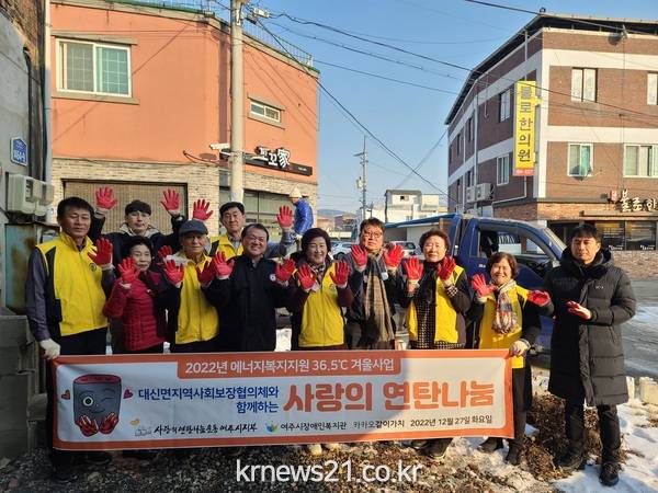 지난 12월 27일(화) 여주시 대신면 지역사회보장협의체(공동위원장 : 박충선, 이용주)에서는 저소득층의 따뜻한 겨울나기를 위한 에너지복지 지원사업의 일환으로 장애인복지관과 함께하는 연탄 나눔 봉사활동을 실시했다.