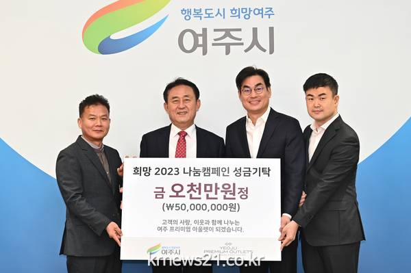 이에 이충우 여주시장은 “항상 지역을 위해 함께해 주시는 여주프리미엄아울렛에 진심으로 감사드린다.”며 “전달 주신 성금은 취약계층을 위해 소중히 쓰겠다.”고 전했다.