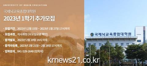 ▲ 사진=국제뇌교육종합대학원대학교국제뇌교육종합대학원대학교(UBE, 총장 이승헌)는 2023년 신·편입생 추가 모집을 1월 27일 오후 5시까지 진행한다고 밝혔다.