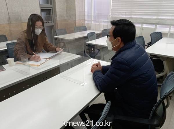 ▲ 사진=무료 법률 상담을 받고 있는 모습/영등포구청 제공# 한국에서 2년째 살고 있는 외국인 A씨는 식당에서 주방보조 업무를 하고 있다. 하지만 최근 A씨는 세달째 임금이 밀리자 월세도 내야되고 생활비도 줄어들어 걱정이 이만저만이 아니다. A씨는 더 이상 식당 사장님과 얼굴을 붉히고 싶지 않아 고민하던 중에 대림동 다드림문화복합센터 내 ‘무료 법률상담 서비스’를 찾았다. A씨는 무료법률 상담을 통해 답답한 상황을 타개할 실마리를 찾았다며 안도의 한숨을 쉬었다.