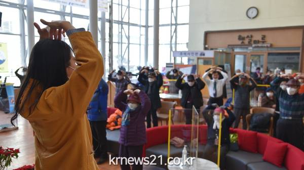 건강체조에 참여한 어르신은 “겨울이라 무기력하고 소화도 잘 안되는 것 같았는데 점심을 먹고 신나는 노래에 맞춰 다함께 체조를 하니 즐겁고 소화도 잘되는 것 같다. 집에서도 따라하기 간편한 동작이라 더 재밌는 것 같다.”라고 전했다.