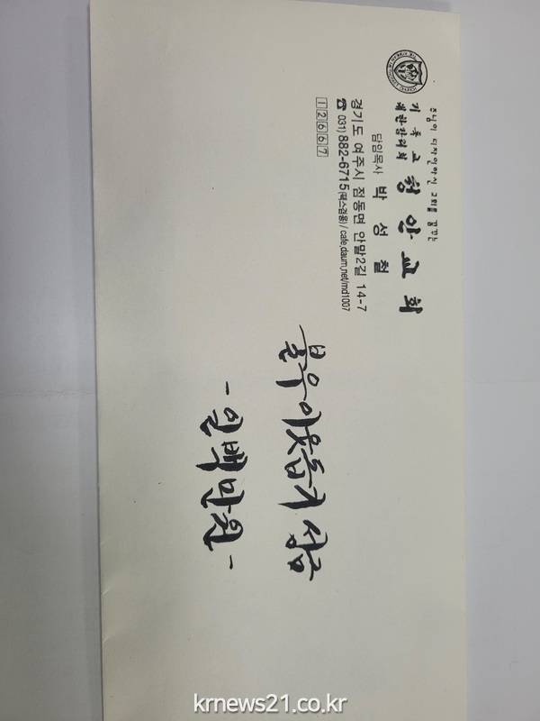 이날 박성철 담임목사는 점동면 행정복지센터에 방문하여 어려운 이웃들에게 따뜻한 마음을 나누고자 하는 마음을 전달하였다.