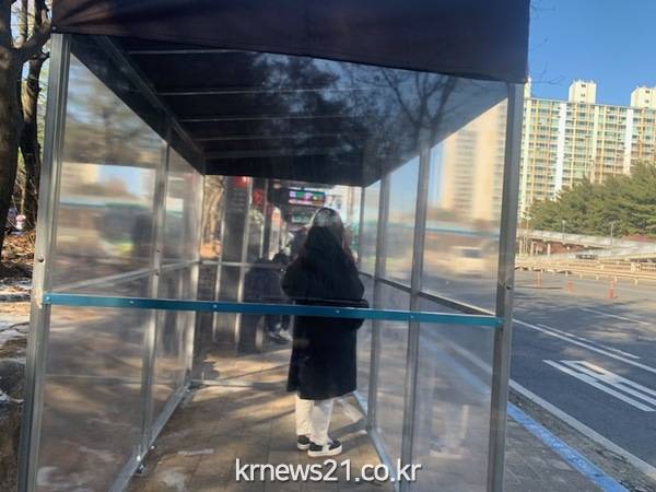 ‘온기텐트’는 보행자의 통행과 버스 등 차량 운전자의 시야 확보를 위해 투명한 소재로 제작됐으며, 한파로 인한 추위와 바람을 피할 수 있는 공간을 제공하는 역할을 한다.