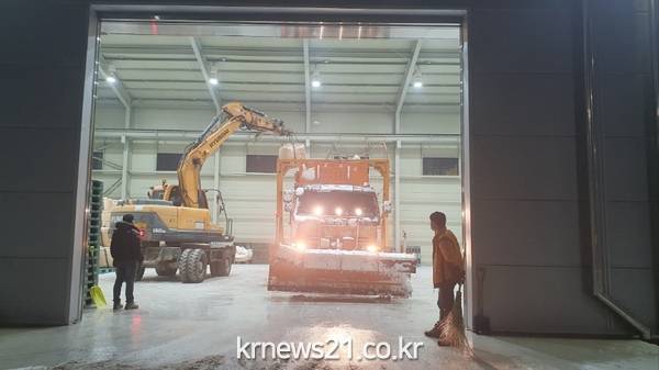 특히 6일(금) 밤 11시부터 12시까지 한 시간 동안 집중적으로 폭설이 내려, 제설재를 사전 살포하였음에도 불구하고 눈이 쌓이기 시작했으나 신속히 제설작업을 실시하여 문제없이 도로 통행이 정상화됐다.