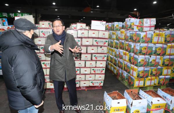 강병삼 제주시장을 비롯한 관계 공무원들은 이날 저녁과 다음날 새벽 양일간 서울 가락동 농수산물도매시장 경매 현장을 방문하여 도매시장 내 6개 법인에서 이루어지는 채소 유통처리 상황과 규격외감귤 유통 여부 등을 함께 점검하였다.