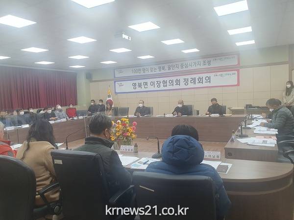 영북면(면장 최재두)은 지난 18일 박명희 이장협의회장을 비롯한 지승열 영북파출소장, 이상용 영북농협 조합장 및 각 리 이장이 참석한 가운데 2023년 첫 번째 이장협의회 정례회의를 개최했다.