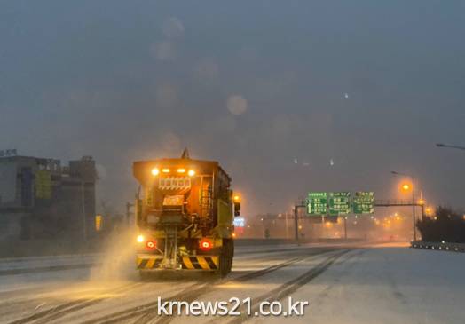 광주시는 24일 새벽 4시30분부터 자치구와 함께 가용한 전 제설장비와 자동염수분사장치를 운용하는 등 철저한 제설작업을 실시하며 설 연휴 마지막 날 귀경길 교통소통이 원활하게 이뤄지도록 조치했다.