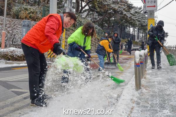 이 구청장은 “폭설에 구민들이 불편을 겪지 않도록 신속하게 제설을 실시하고 빙판길 및 제설 취약지역이 없는지 꼼꼼히 살피겠다.”고 말했다.