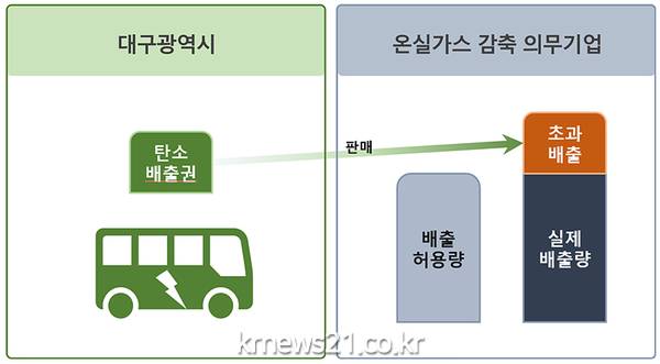 기업은 할당량 기준을 맞추기 위해 주식과 같이 한국거래소에서 기업 간에 배출권을 사고팔 수 있는데 대구시가 전기버스를 도입하여 확보한 탄소배출권을 이를 필요로 하는 기업에 판매할 계획이다.