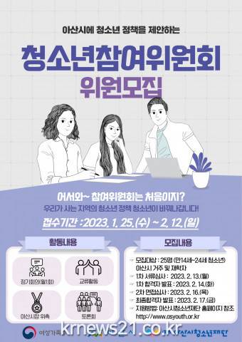 ▲ 사진=충청남도청소년진흥원아산시청소년재단(이사장 심장근)이 2023년 아산시청소년참여위원회 ‘빛솔’의 위원을 모집한다.